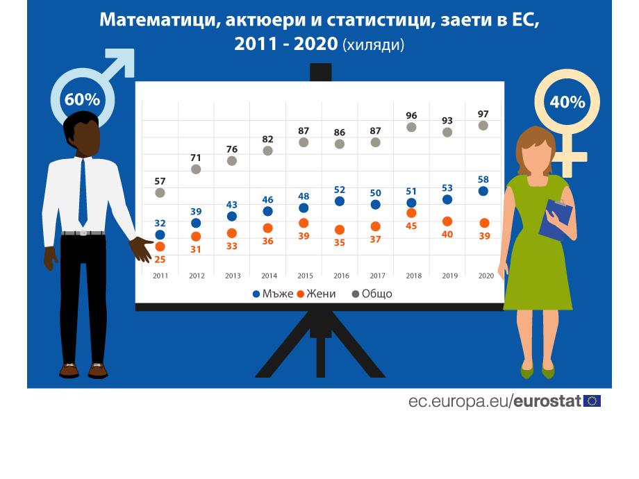 На сайта си и във фейсбук НСИ публикува и инфографика, посветена на статистиците, работещи в Европейския съюз през периода 2011 - 2021 година.