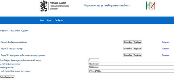 Отчетът се състои от три раздела, които се попълват чрез избор на бутона
