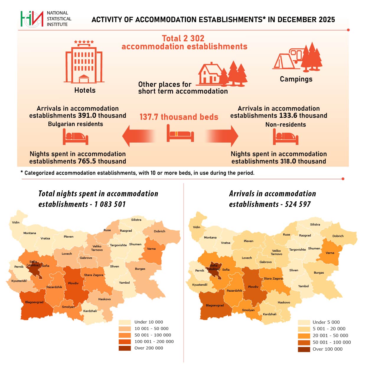 | Statistical population | All categorized accommodation establishments with 10 and more bed-places in use. |