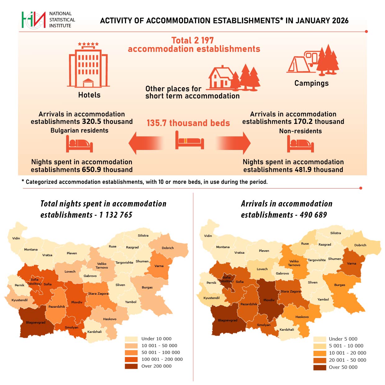 | Statistical population | All categorized accommodation establishments with 10 and more bed-places in use. |