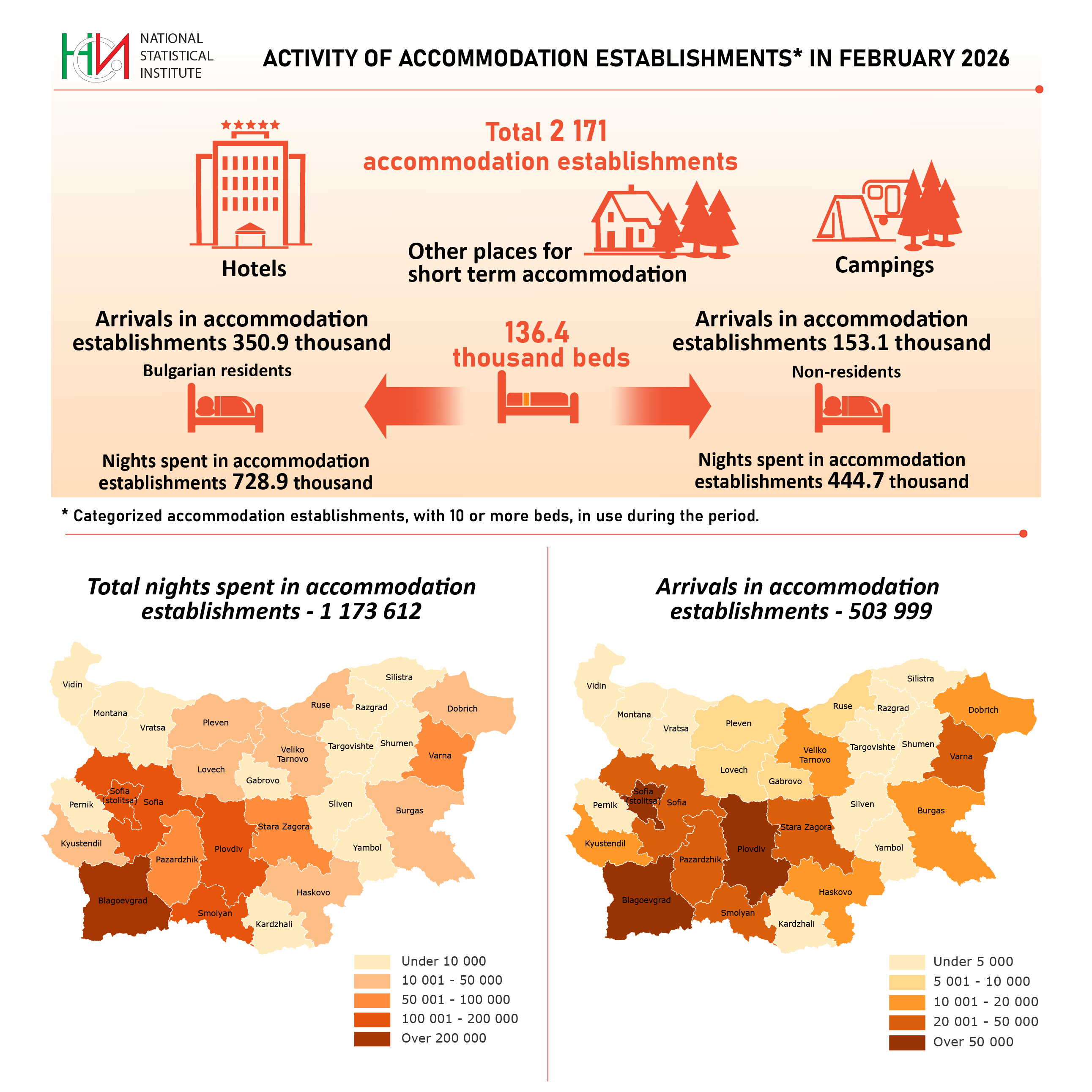 | Statistical population | All categorized accommodation establishments with 10 and more bed-places in use. |