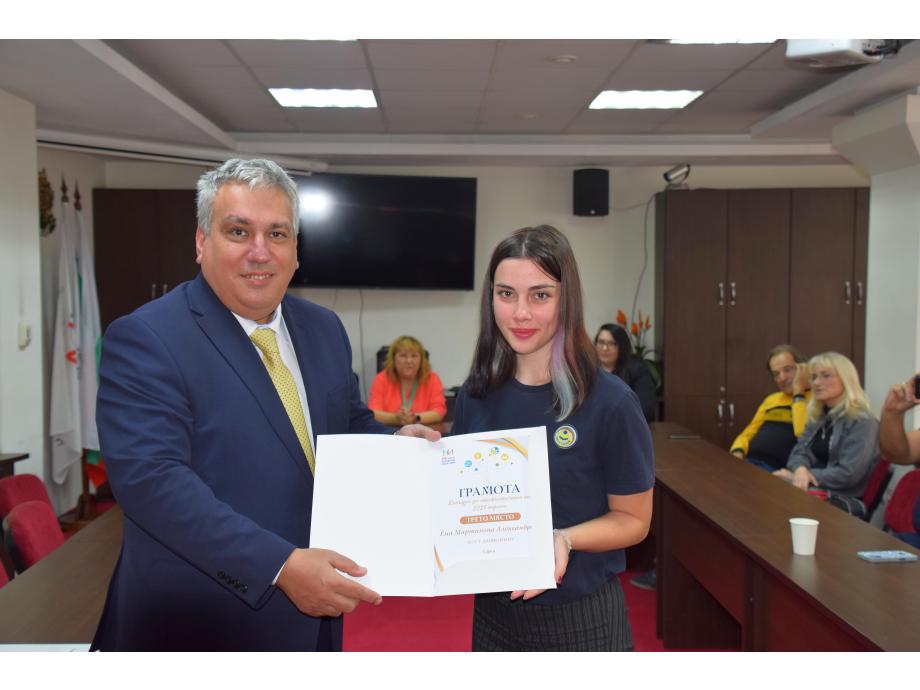 На специална церемония председателят на НСИ, доц. д-р Атанас Атанасов, връчи наградите на победителите в Националния конкурс за статистическо есе за ученици от IX до XII клас, който се проведе по повод Европейския ден на статистиката – 20 октомври.