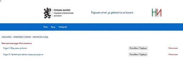срещу съответния раздел. Когато раздела не е попълнен след бутона се появява надпис [Непопълнен], а след коректното попълване - [Попълнен].