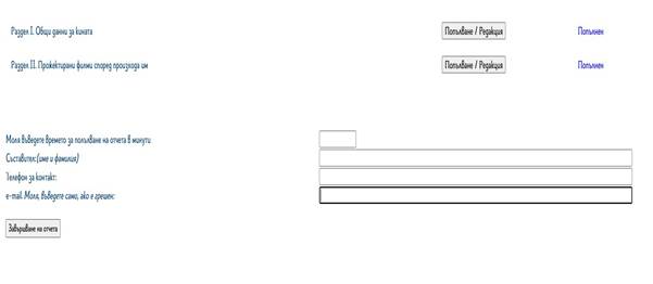 Отчетът се състои от два раздела, които се попълват след избор на бутона