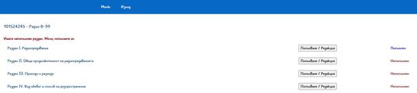 · Ако разделът не е попълнен, срещу него ще се появи надпис [Непопълнен].